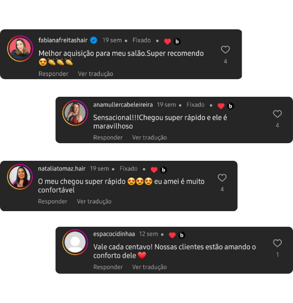 Diariamente, recebemos feedbacks positivos dos profissionais da área da beleza do Brasil inteiro. Nossos clientes relatam os benefícios do Apoio de Pescoço Confort e como trouxe conforto, relaxamento e diferencial nos procedimentos nos lavatórios.